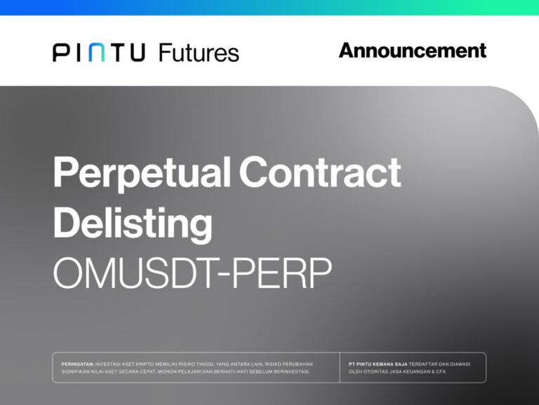 Hi Teman Pintu, Berdasarkan peninjauan yang telah dilakukan, kami memutuskan untuk melakukan delisting dan menghentikan perdagangan untuk OMUSDT-PERP di...